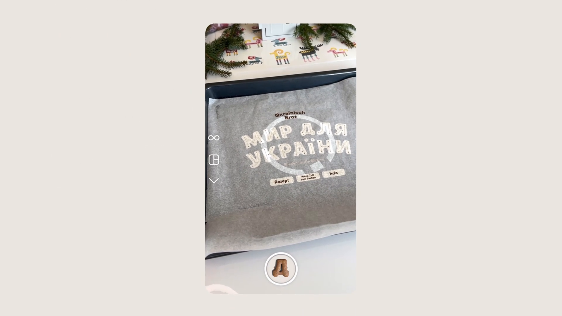 Für die Spendenaktion "Ukrainisch Brot" wurde der Weihnachtsklassiker Russisch Brot in Ukrainisch Brot umbenannt und ganz Österreich zum Backen, Generieren und Sharen von Friedensbotschaften in kyrillischer Schrift eingeladen.