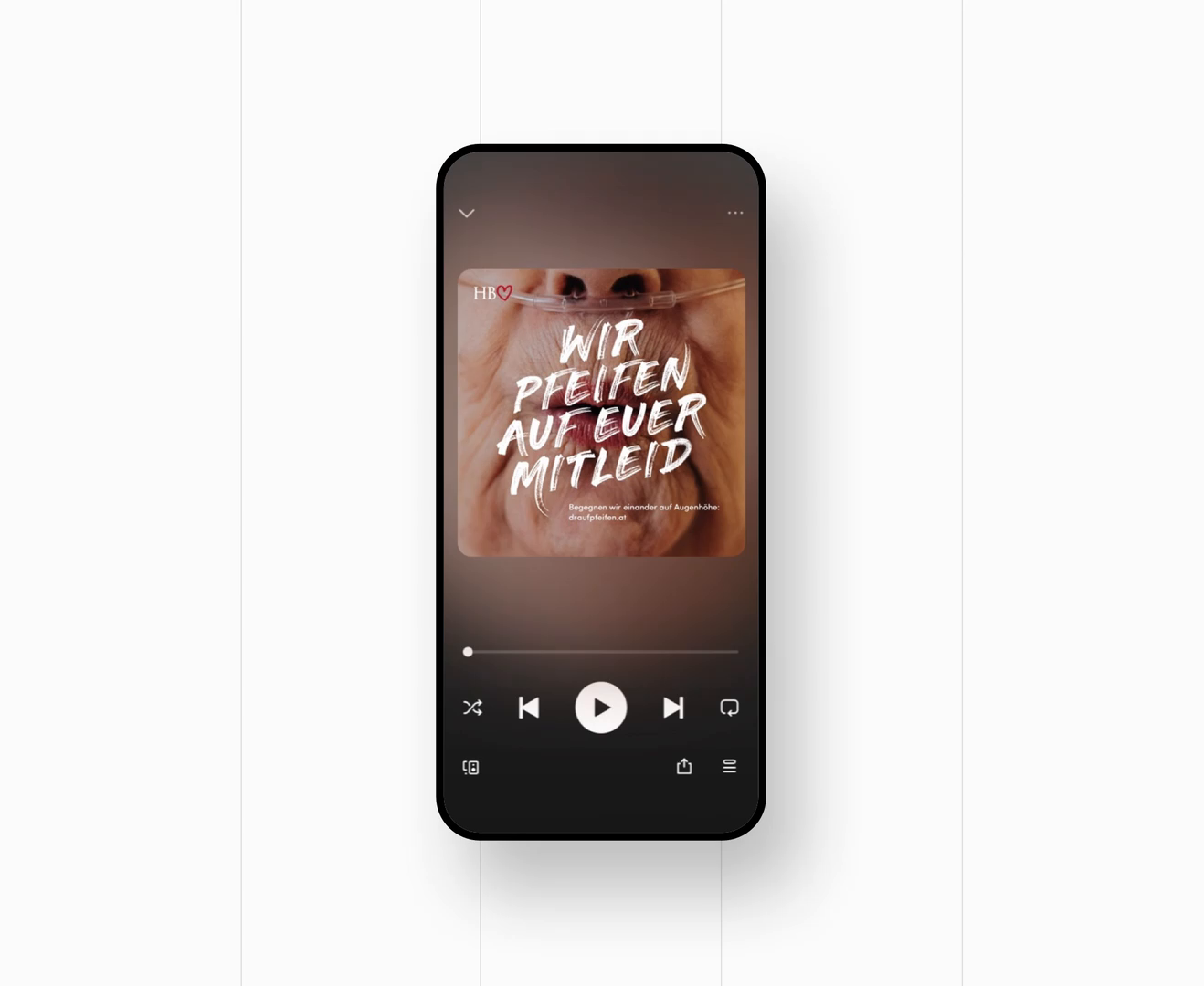 Auf Aussagen wie „Ohje, wie arm“ pfeifen wir deshalb. Buchstäblich. Mit Hilfe einer KI wurden Mitleidsbekundungen in Töne übersetzt – aus ihnen entstand das musikalische Thema, das sich durch die Kampagne zieht. Die Kampagne stellt die Menschen des Hauses in den Mittelpunkt. Und warum sie auf Mitleid pfeifen – nicht aber auf Mitgefühl.