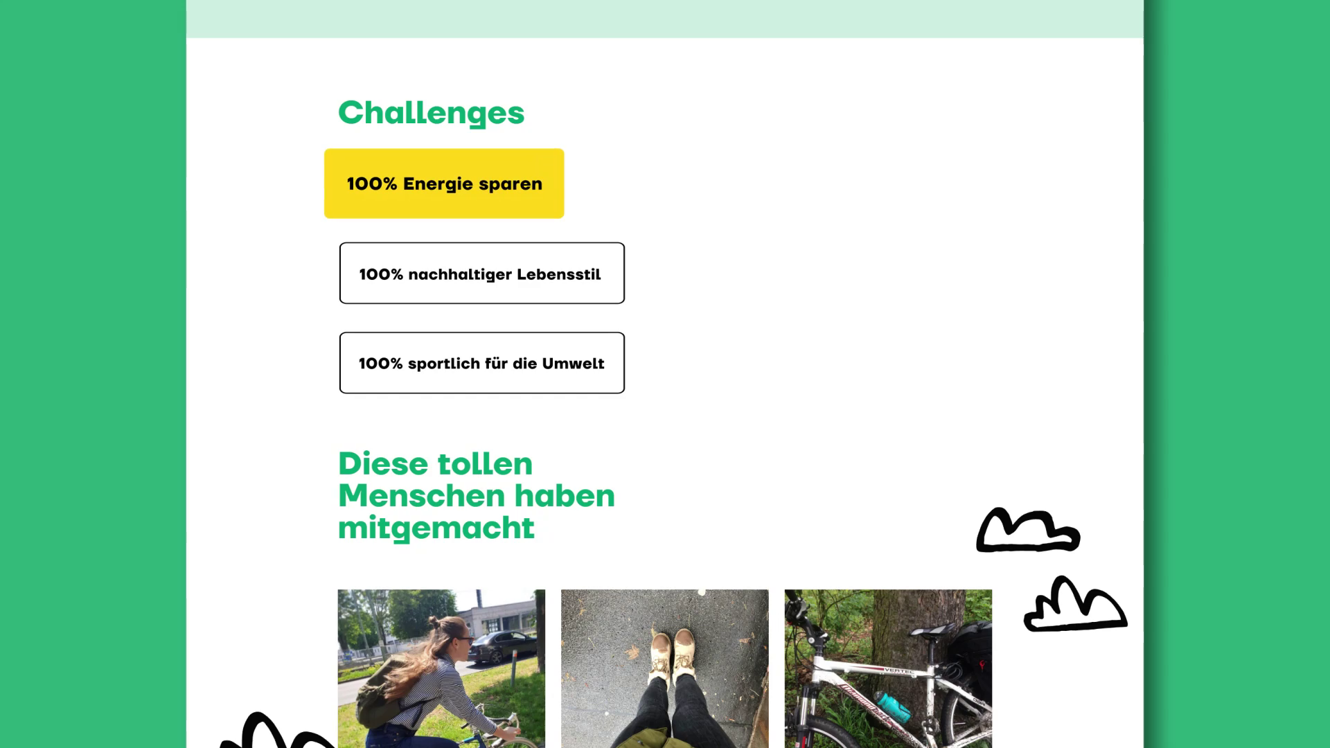 Wir haben 15 Energiesparchallenges in 3 Kategorien definiert.